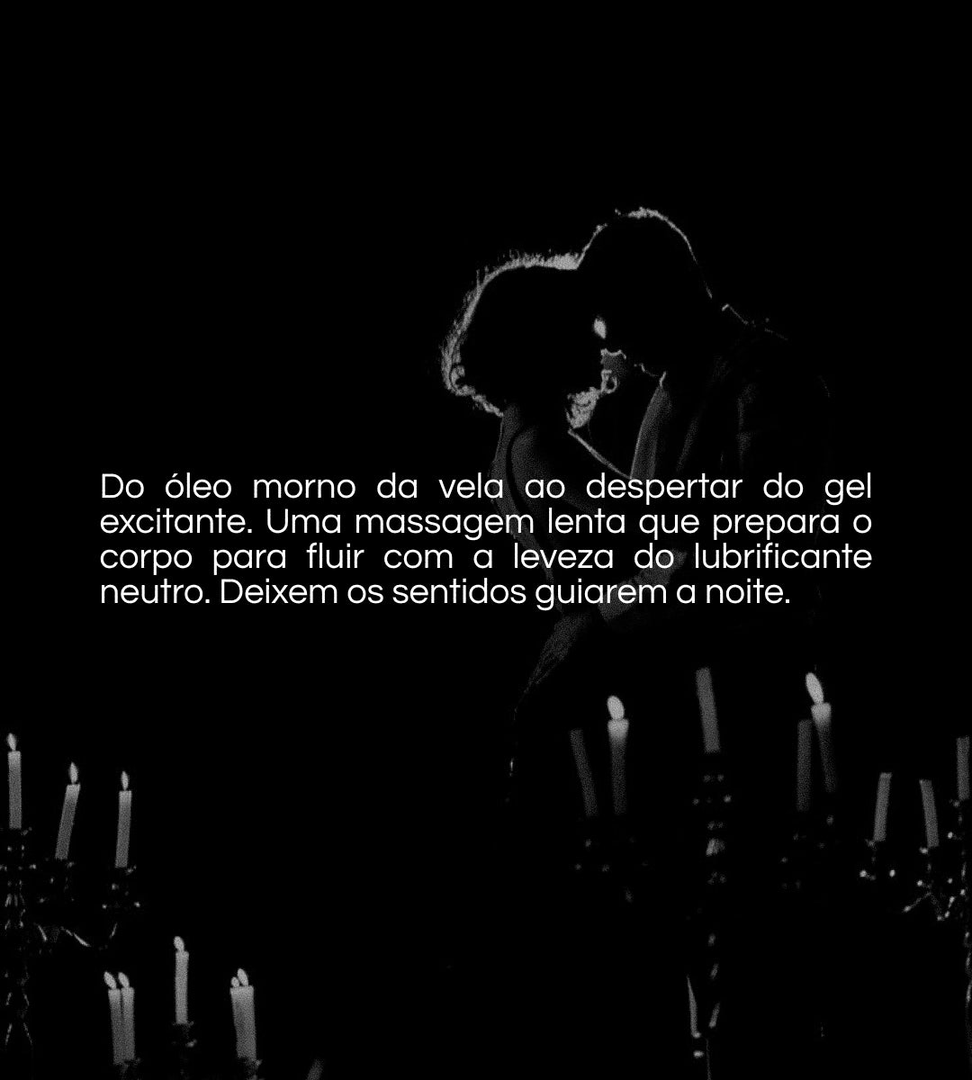 Para casais que sentem que a rotina afastou a intimidade. Para quem percebe que a vontade não desapareceu, só ficou soterrada debaixo do cansaço. O Kit Sensorial funciona como um reset: ele cria as condições certas para que o desejo volte naturalmente, sem pressão.