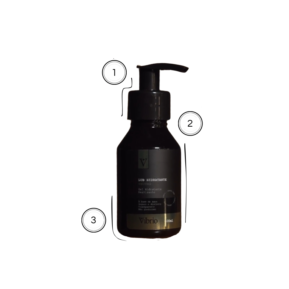 1 - Pump dosador: Embalagem com válvula prática e higiênica, que evita desperdícios e facilita o uso com apenas uma mão, ideal para momentos de intimidade e praticidade.