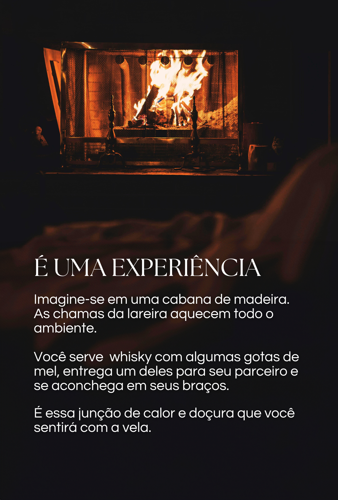 Com aromas bem presentes, a vela envolve o ambiente com notas amadeiradas do whisky que se abrem com o adocicado do mel.